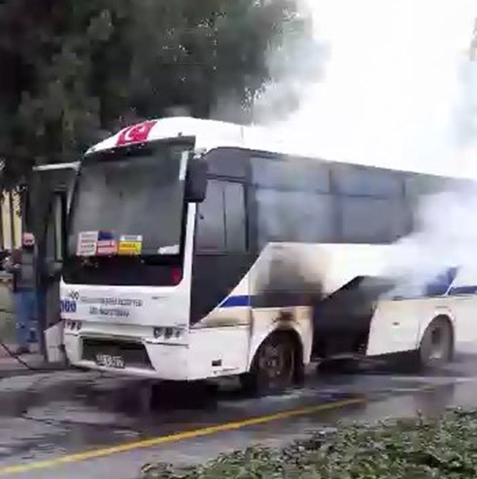 Halk otobüsünde korkutan yangın