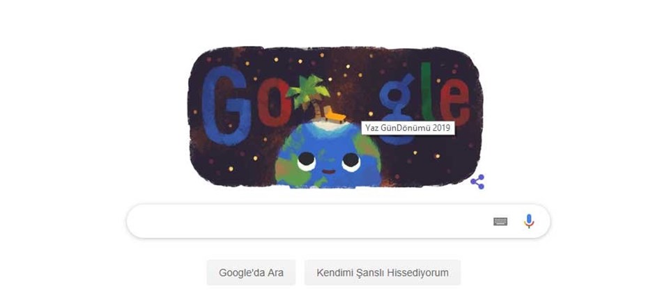 Kuzey Yarım Kürede yılın en uzun gündüzünün yaşanacağı 21 Haziran Yengeç ekinoksuna özel Doodle hazırladı.