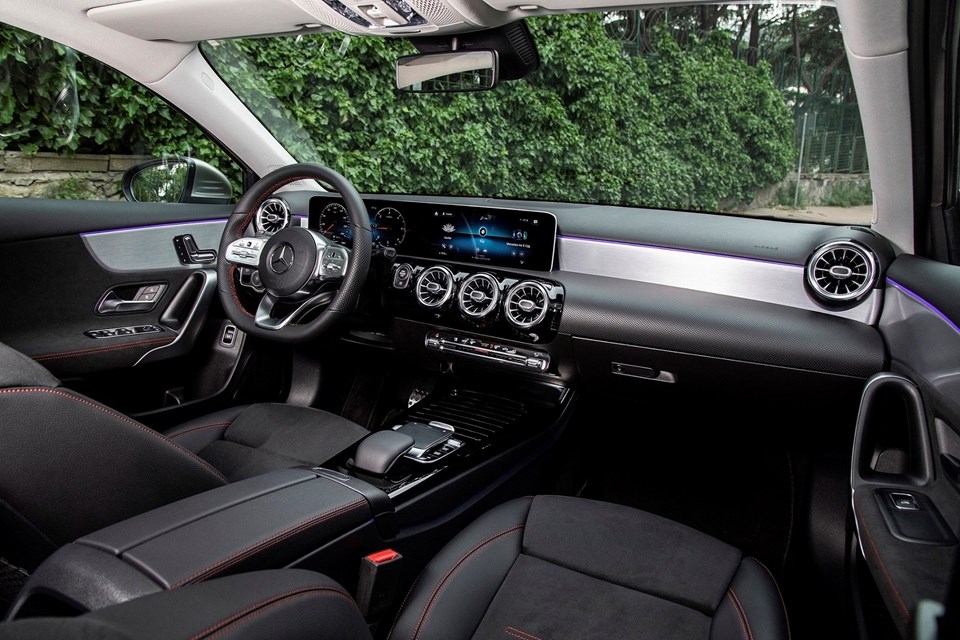 Mercedes-Benz’in kompakt sınıfta devrim niteliği taşıyan yenilikçi iç mekân yaklaşımıyla A-Serisi Sedan, modern kavramını yeniden tanımlıyor. İç mekân tasarımı, gösterge paneli ile başlıyor; gösterge panelinin üzerini örten bir koruma bulunmadığı için gösterge panelinin gövdesi havada süzülüyor hissi veriyor. İsteğe bağlı olarak 64 renk seçeneği sunan ambiyans aydınlatması, havada süzülme etkisini daha da güçlendiriyor. Tamamen dijital gösterge paneli isteğe bağlı olarak sunulurken türbin görünümlü havalandırma çıkışları sportiflik vurgusunu arttırıyor. Yeni Mercedes-Benz A-Serisi Sedan’ın kokpit tasarımı; iki adet 7 inç’lik ekran, bir adet 7 inç ve bir adet 10,25 inç’lik ekran ve son olarak iki adet 10,25 inç’lik ekran olmak üzere üç farklı seçenek ile sunuluyor.